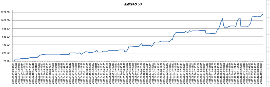 昨年の入金は当時取引残額が1万円台まで落ちた2025年1月13日に5万円入金しただけです。